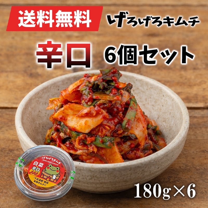 【送料無料】げろげろキムチ 辛口 180g×6|にんにく増量 まとめ買い・お得セット